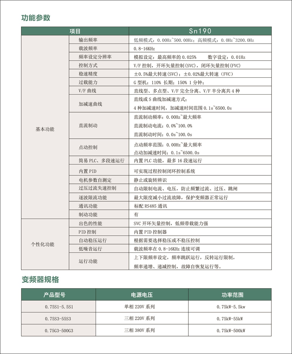 SN190G系列变频器, 是针对传统农业、 工业及制造业等领域所研制的通用型矢械变频器,广泛适用于风机水泵、 印刷包装、 电力建材、 冶金化工、市政消防等行业。 该系列变频器具有性能卓越、 功能丰富、 结构精巧、 操作简单、 安全可靠、 环境适应性好等特点。